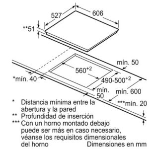 Vùng nấu bên trái: 1 x Ø 210/ 260/ 320 mm, 2.2/ 2.6/ 3.3 KW (có thể tăng đến 4.4 KW)